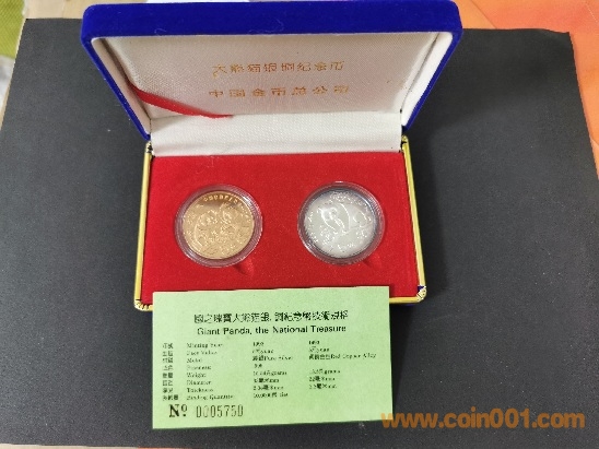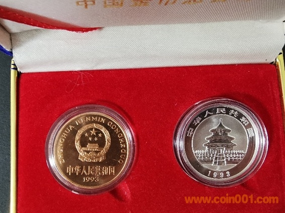 93年熊貓紀(jì)念幣和93年熊貓銀幣1/2盎司套裝,銀幣邊上有紫色氧化,880元包快,直接確認(rèn)有效
