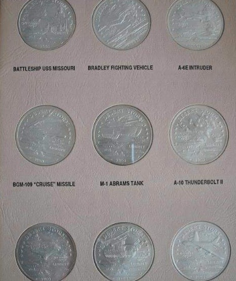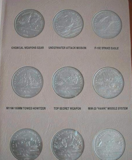 這套幣是以1991年對(duì)伊拉克發(fā)動(dòng)的沙漠風(fēng)暴戰(zhàn)爭(zhēng)中美軍使用的各種先進(jìn)武器為圖案