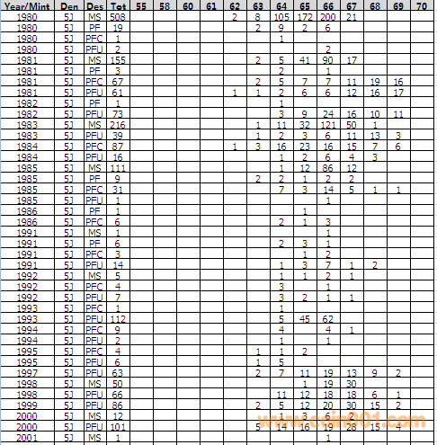 NGC硬幣評(píng)級(jí)分?jǐn)?shù)分布 ..