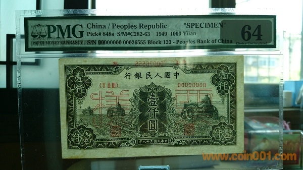 █ █ █ █ █一版1000元三臺(tái)拖拉機(jī)稀少票樣美國(guó)PMG本土評(píng)級(jí)