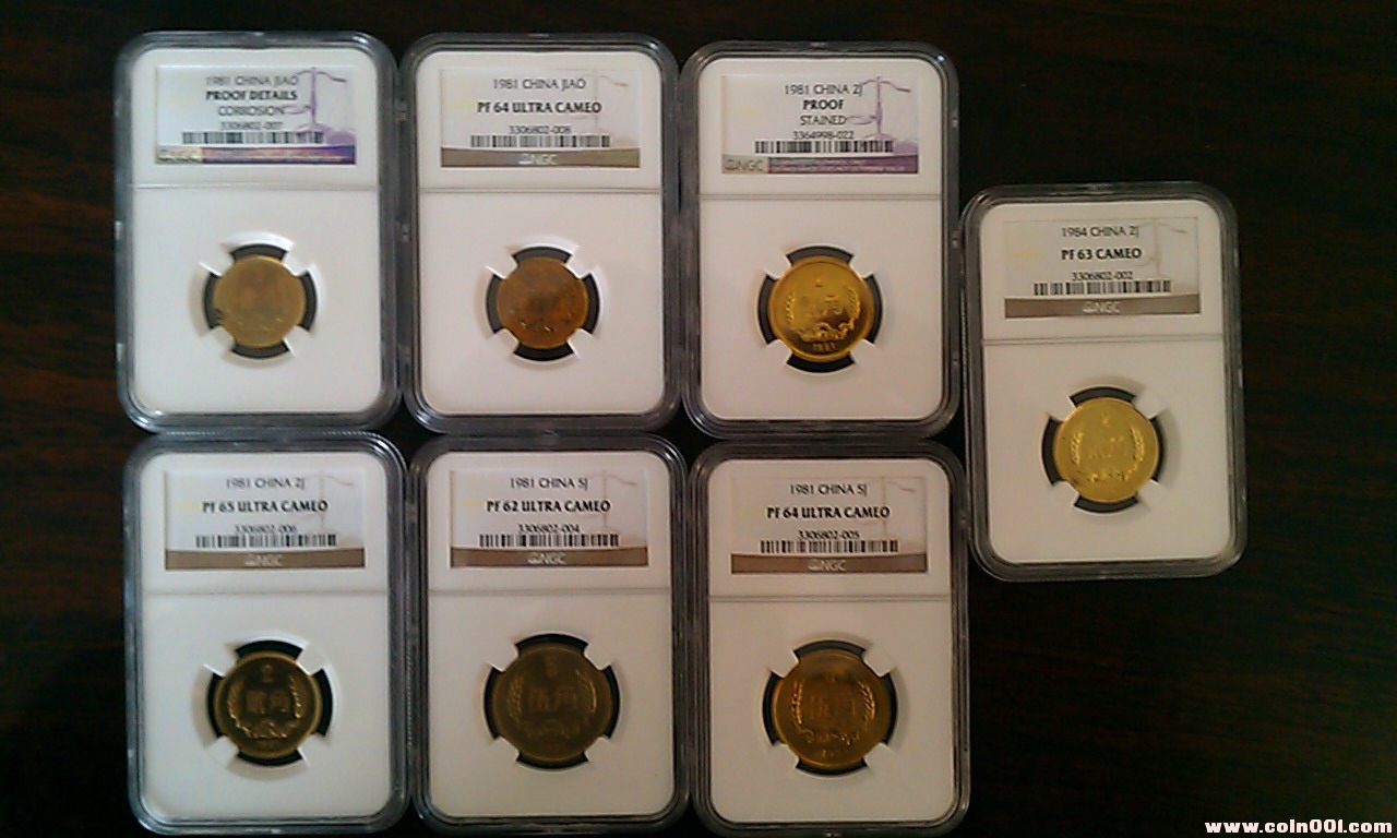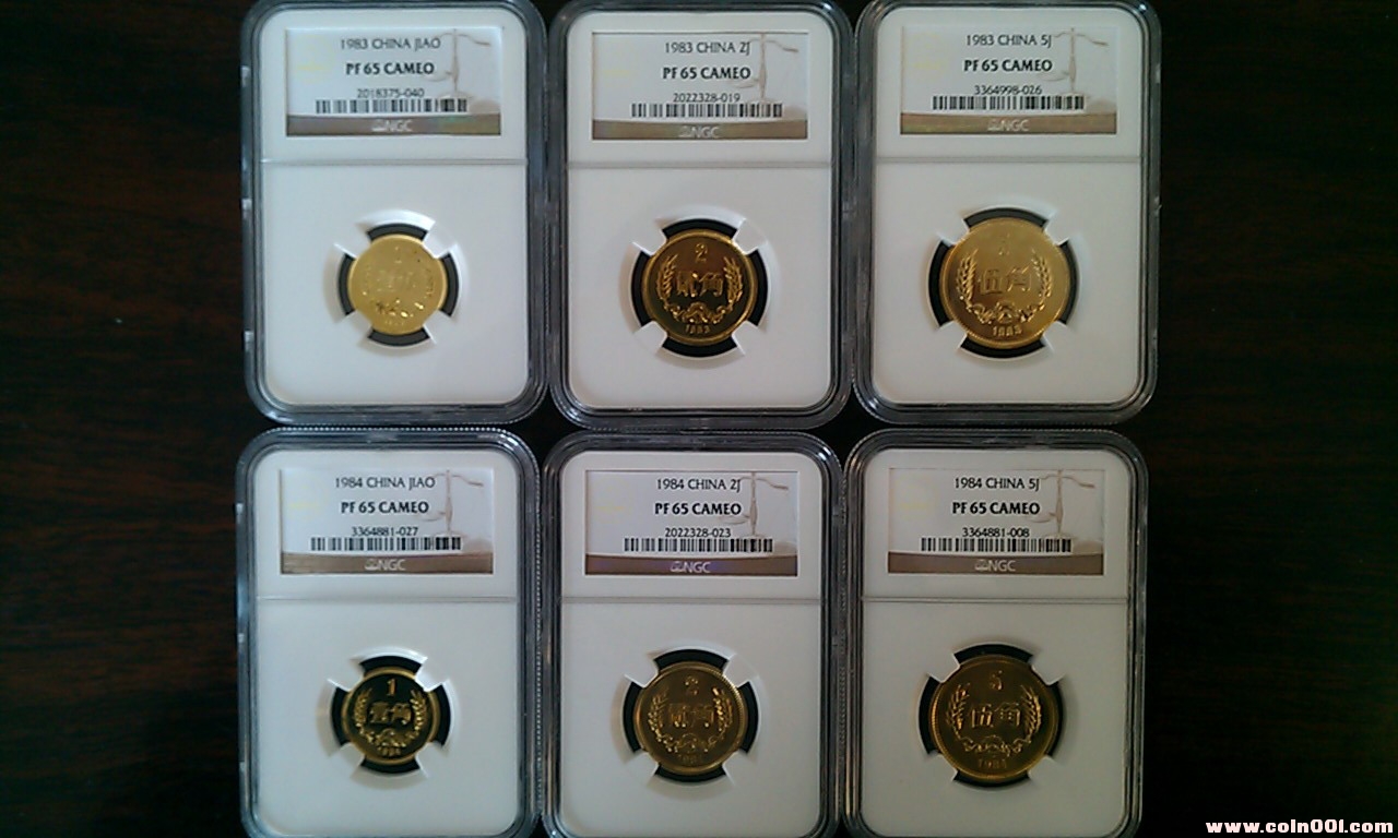 引用 引用第5樓evan79_song于2012-01-29 12:19發(fā)表的 : 按電聯(lián)價確認 第二套: 84年角分幣全部為精制NGC評級幣,分數都是64分,分數雖然不高,但難得的是全同分,共計6枚。 分別為:1分:64CA, 2分:PF64, 5分:PF64, 1角:,64UC, 2角:PF64, 5角,64CA. 價:6500元,不單出。 .......