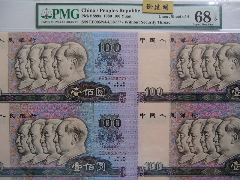 3拍 0元起拍 第四版人民幣 PMG 67分 801CR 天藍(lán)冠 全程無(wú)多余的47尾345 順子號(hào)一張 絕中絕刀貨送評(píng)級(jí)的!無(wú)瑕疵 四版將來(lái)的幣王!67分一流珍品稀少!早期美國(guó)本土嚴(yán)評(píng)出分的!