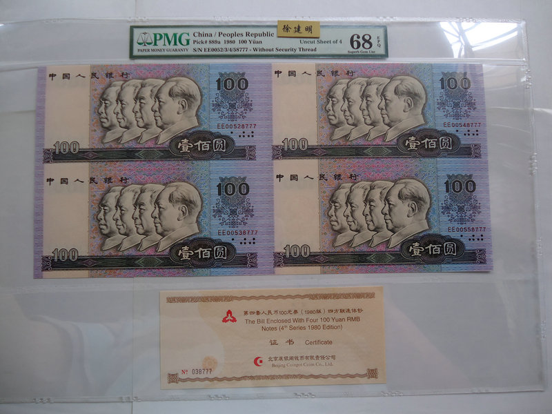 29拍 0元起拍 紀(jì)念鈔 PMG 66分 中國(guó)銀行成立100周年 中銀鈔 全程無(wú)47尾68 順發(fā)的牛號(hào)一張 早期美國(guó)本土嚴(yán)評(píng)回來(lái)的高清盒子 帶冊(cè)子 收據(jù)還是無(wú)47尾111的豹子號(hào)?。?br />