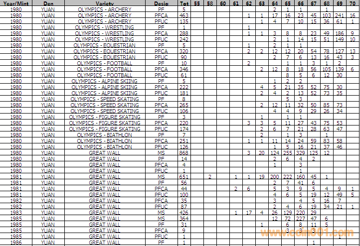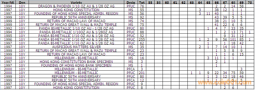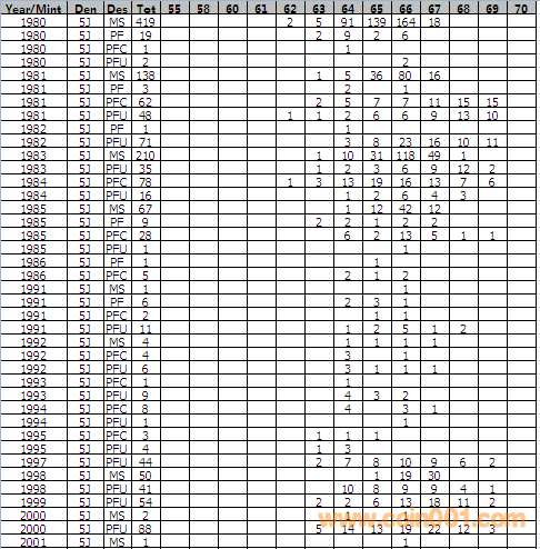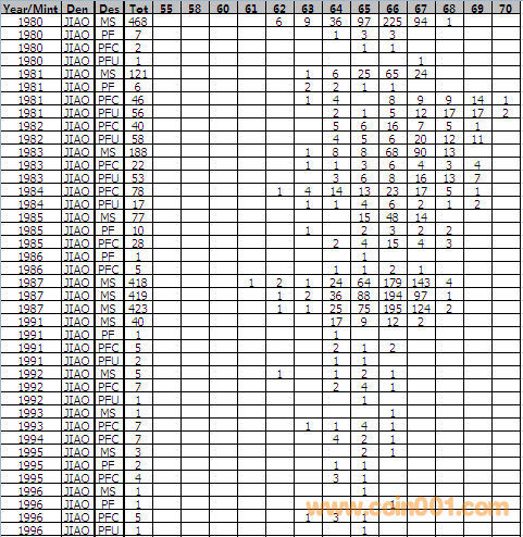 NGC硬幣評級分數(shù)分布 ..
