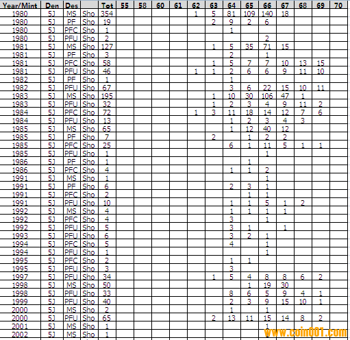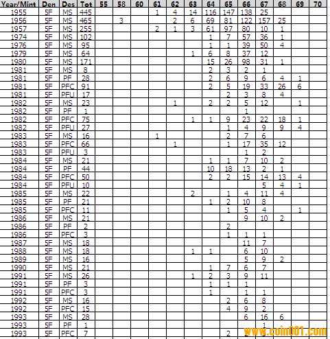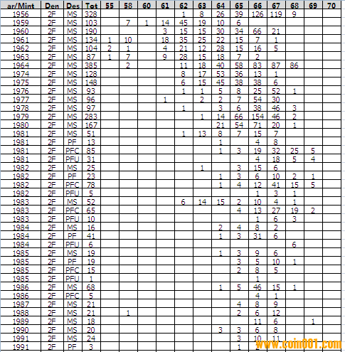 NGC硬幣評級分?jǐn)?shù)分布 ..