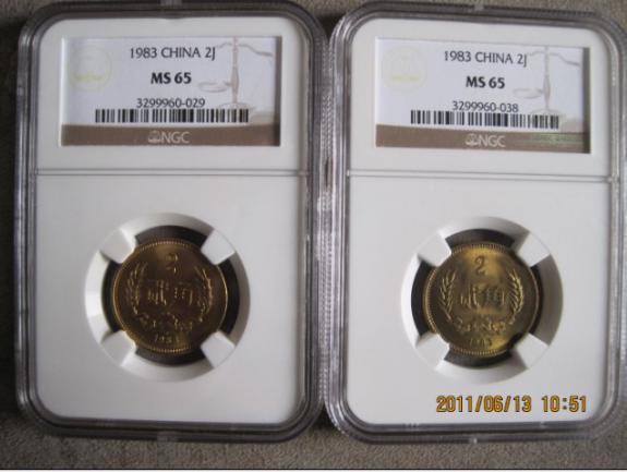 8:1983年2角硬幣63幣的999元(有兩枚).串號為3299960-046.3299960-045.評63分當然有品相問題.