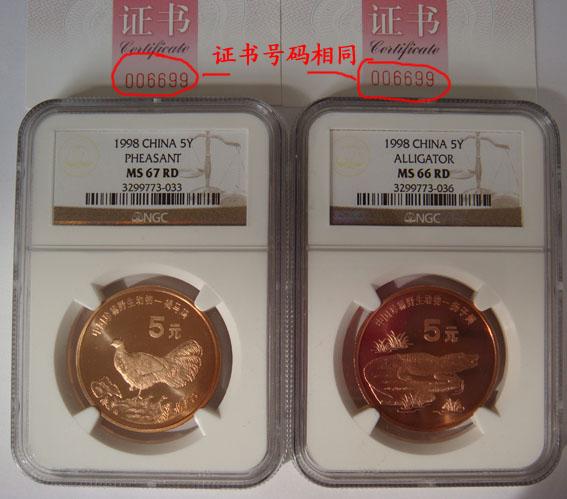 引用 引用第5樓龍江小許于2011-03-26 20:22發(fā)表的 : 朱MS67 丹MS67¥900 雞鱷:雞MS65 鱷MS66(證書號相同:006698)¥700 各確認一套!