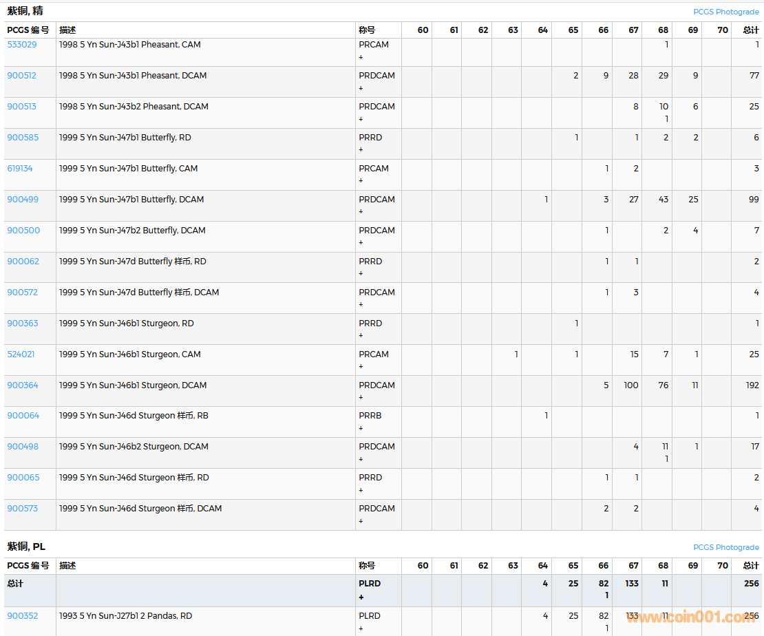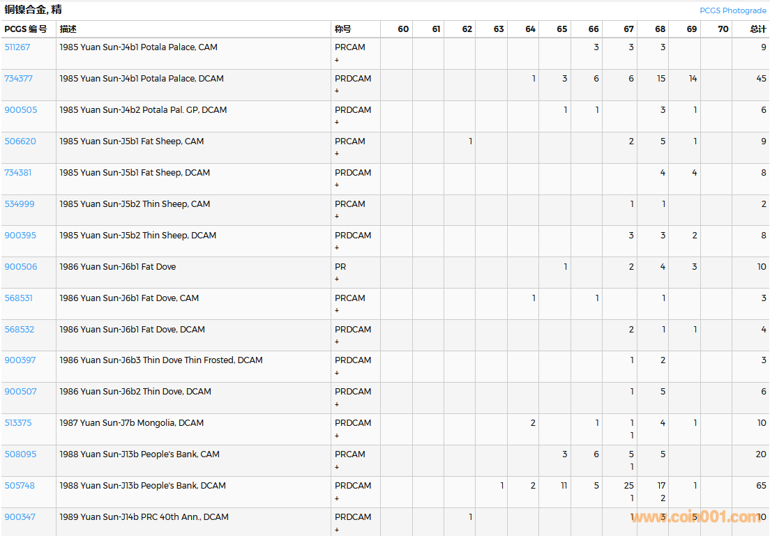 PCGS硬幣評(píng)級(jí)數(shù)量報(bào)告( ..