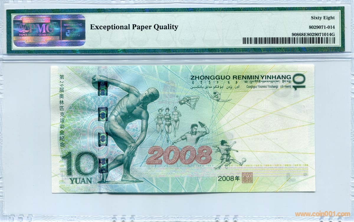 PMG 68 EPQ 奧運(yùn)綠鈔 奧運(yùn)鈔 紀(jì)念鈔