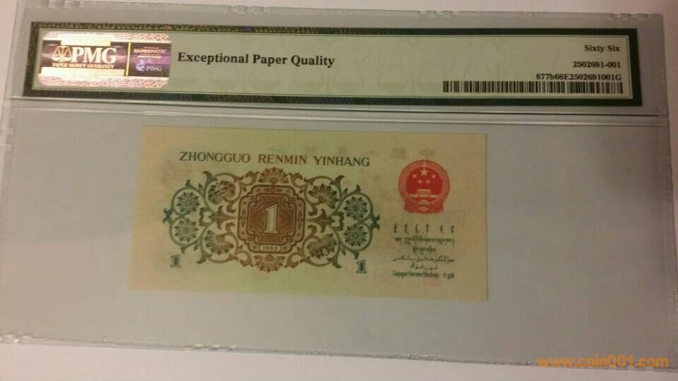 出第三版人民幣,1962年,壹角,背綠水印,PMG,66,EPQ