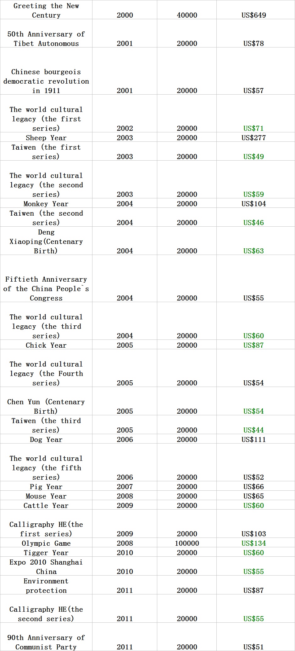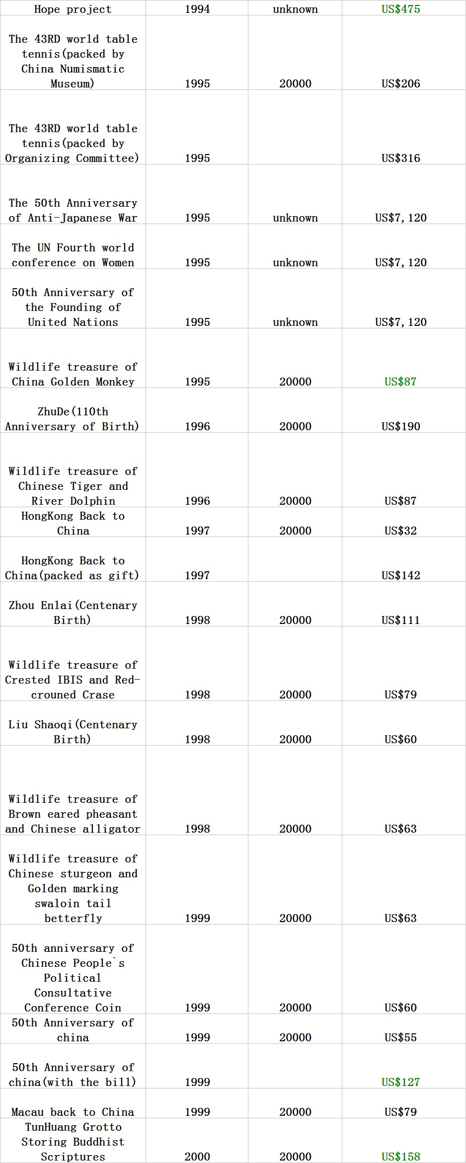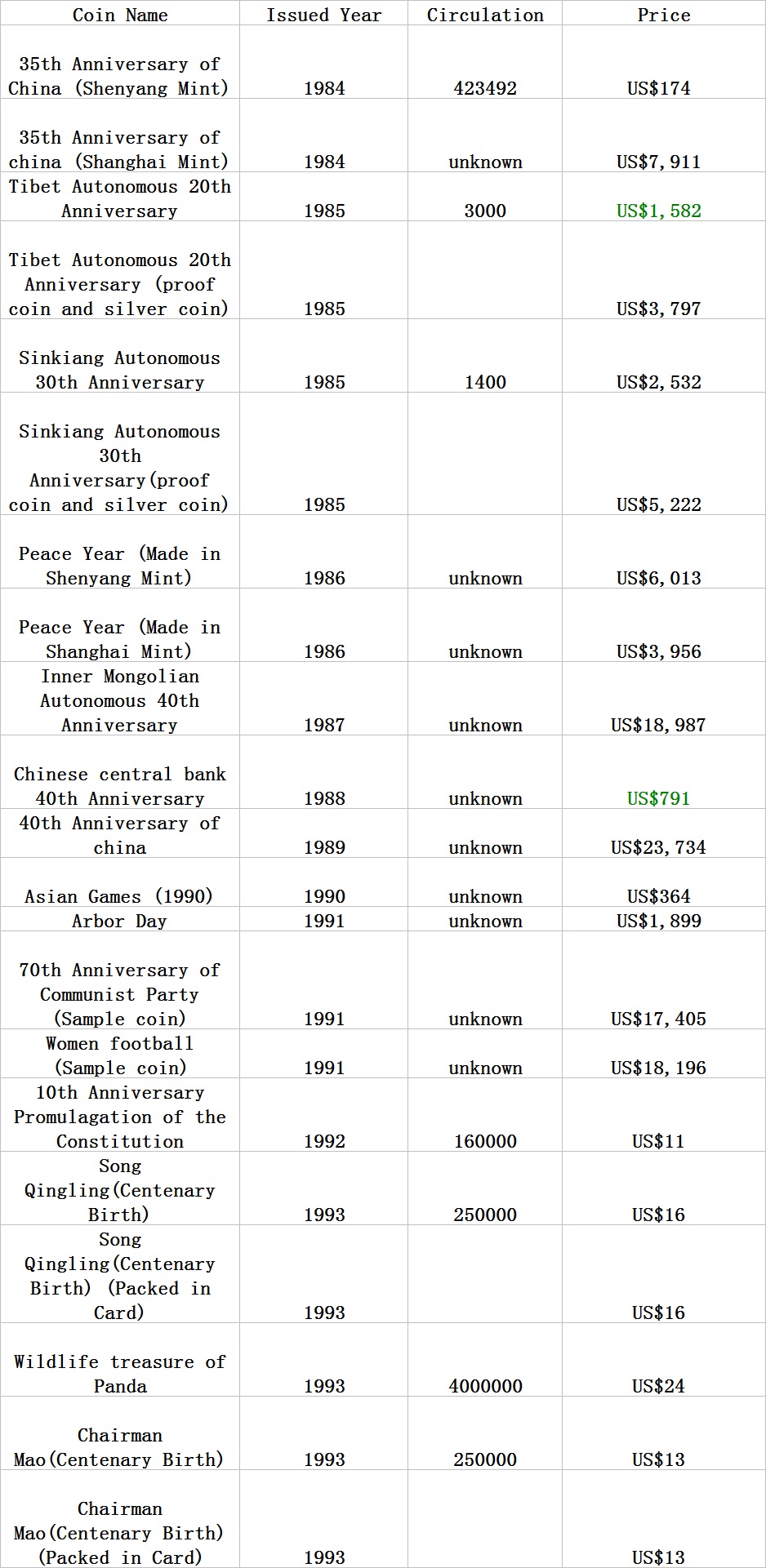 普通(精制)紀(jì)念幣交易