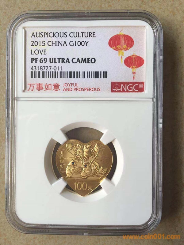 15年并蒂同心金幣NGC70,串號(hào)001,帶證書,售價(jià):3800