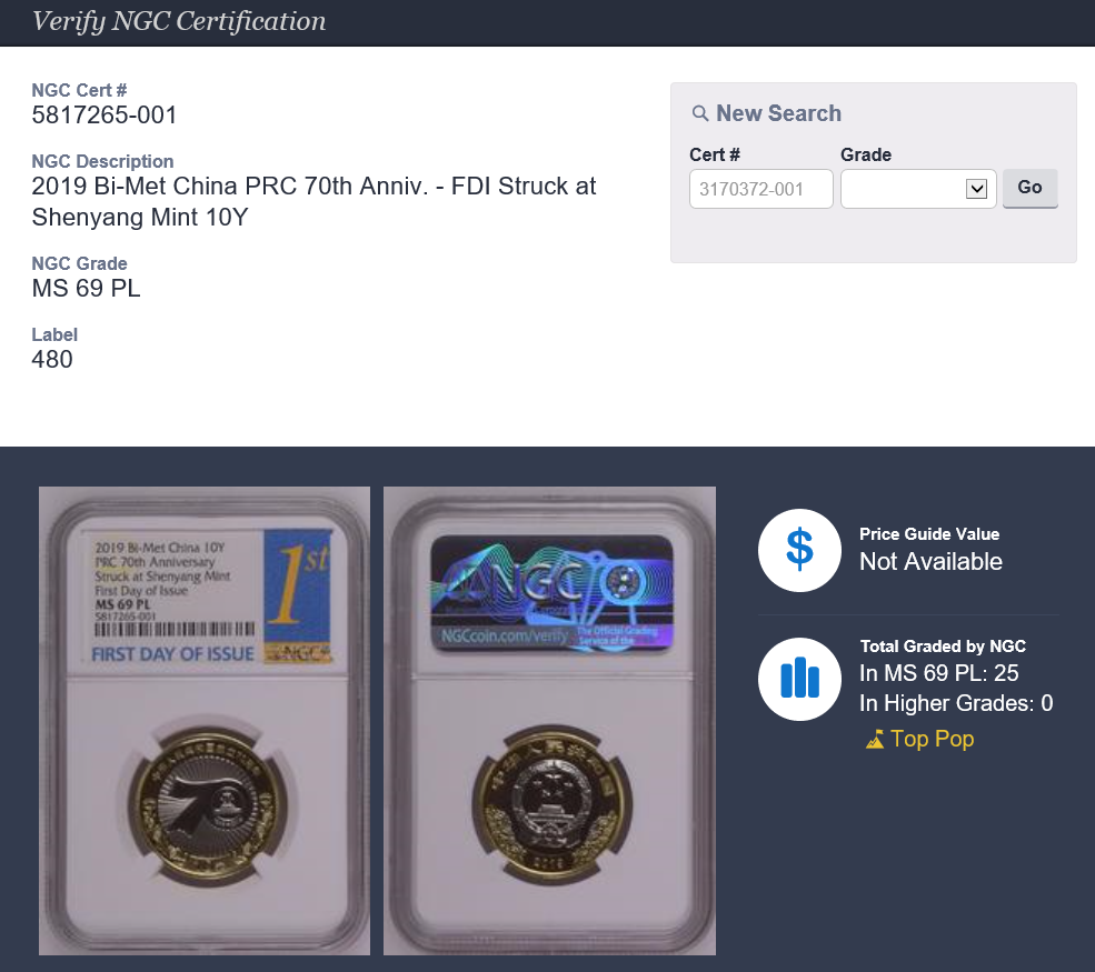 NGC建國70周年紀(jì)念幣( ..