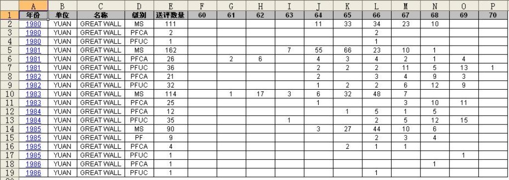 81-86長(zhǎng)城幣NGC評(píng)級(jí)數(shù)據(jù)(數(shù)據(jù)截止日期11年12月8日)