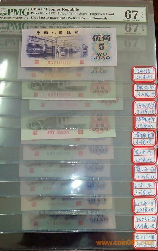 代友出PMG67分三版角幣一套11枚,全部無47尾08