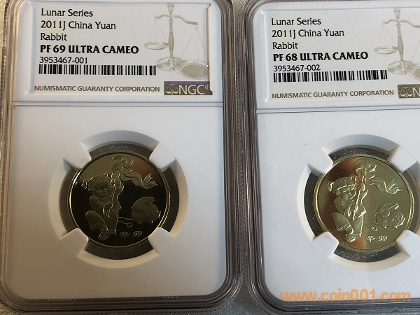 生肖兔精制幣69UC1100元 帶卡冊(cè)證書只有2枚