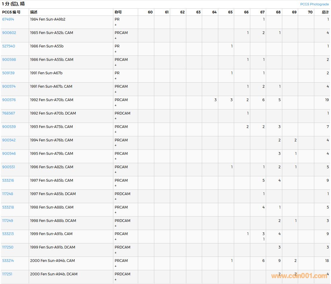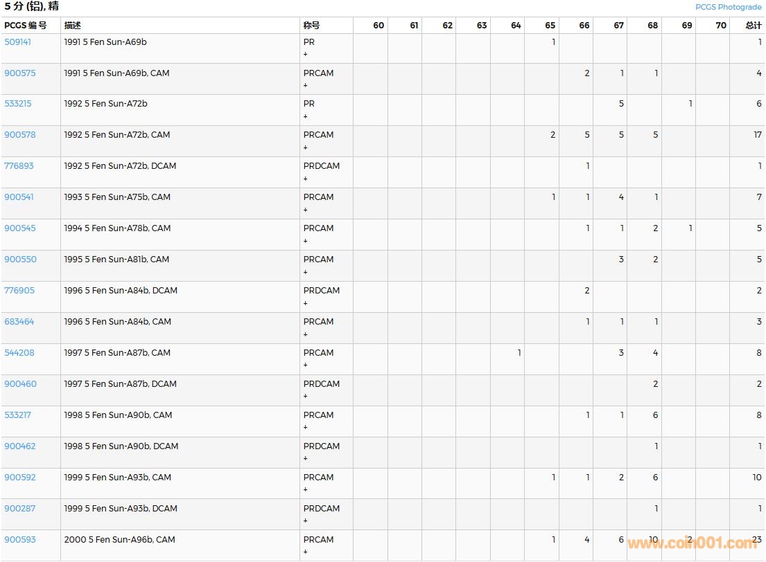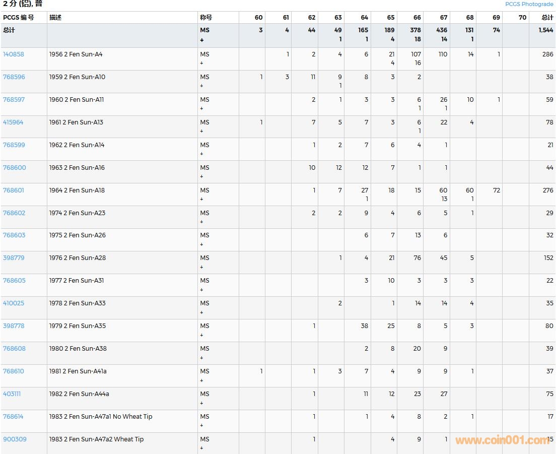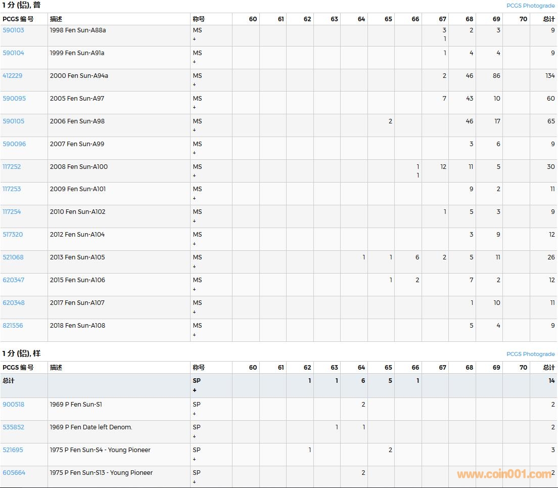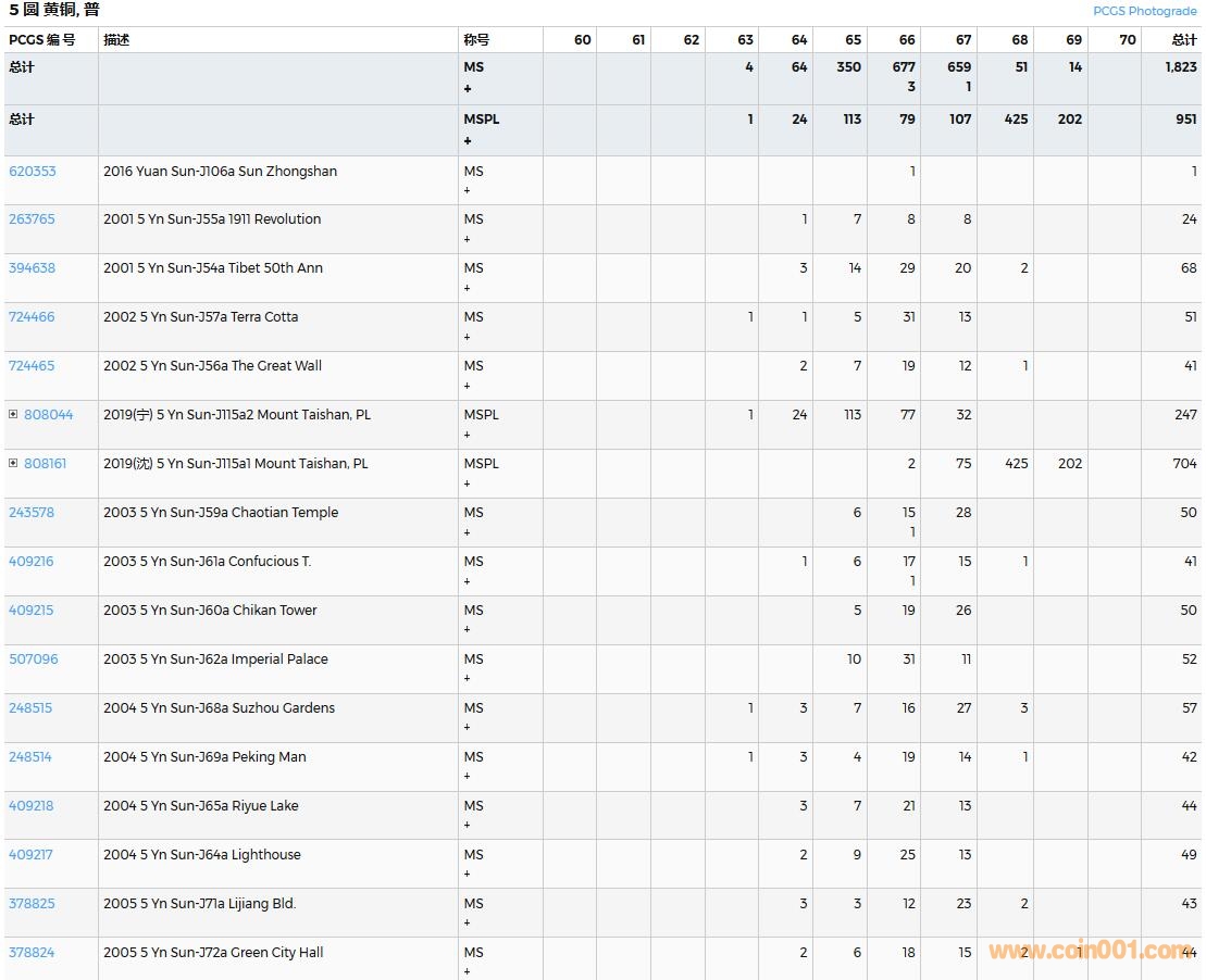 PCGS硬幣評級數(shù)量報告( ..