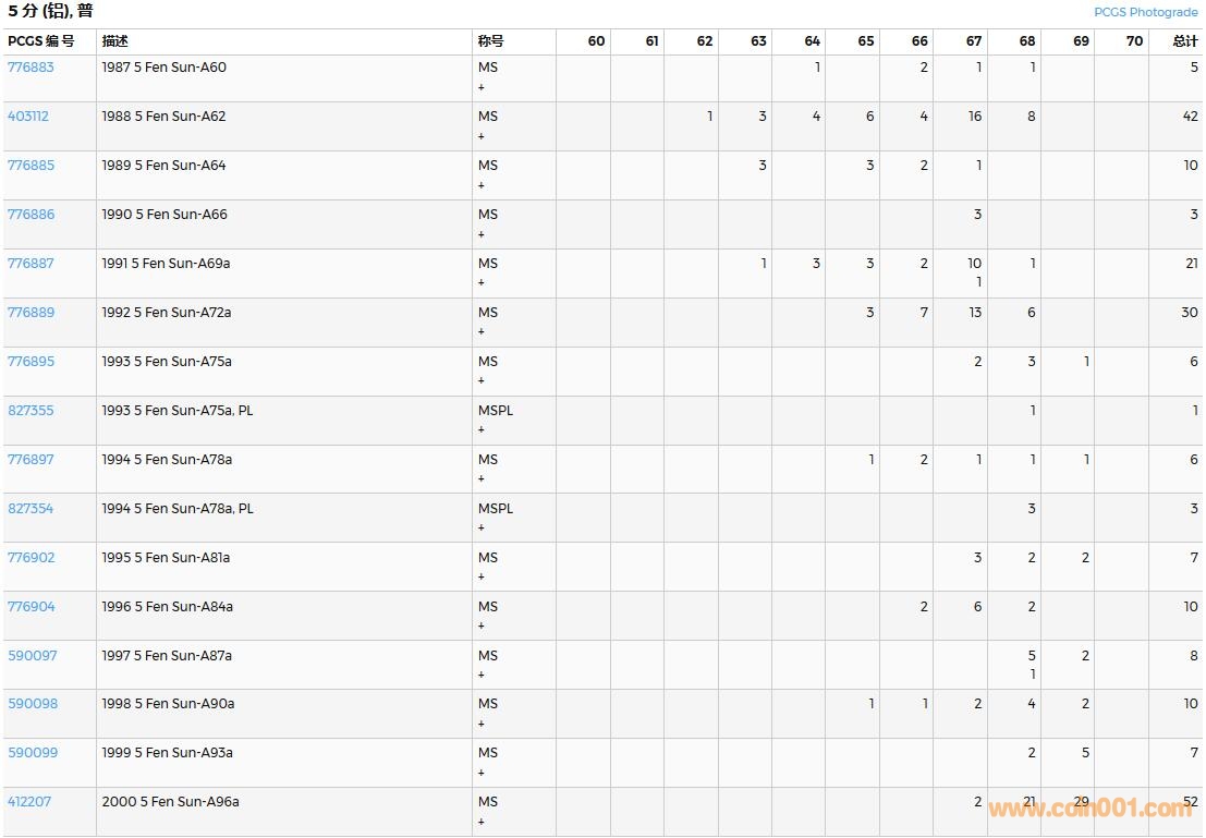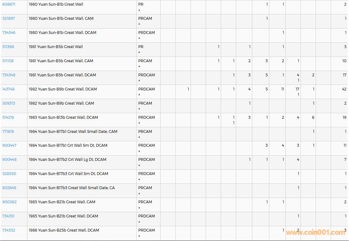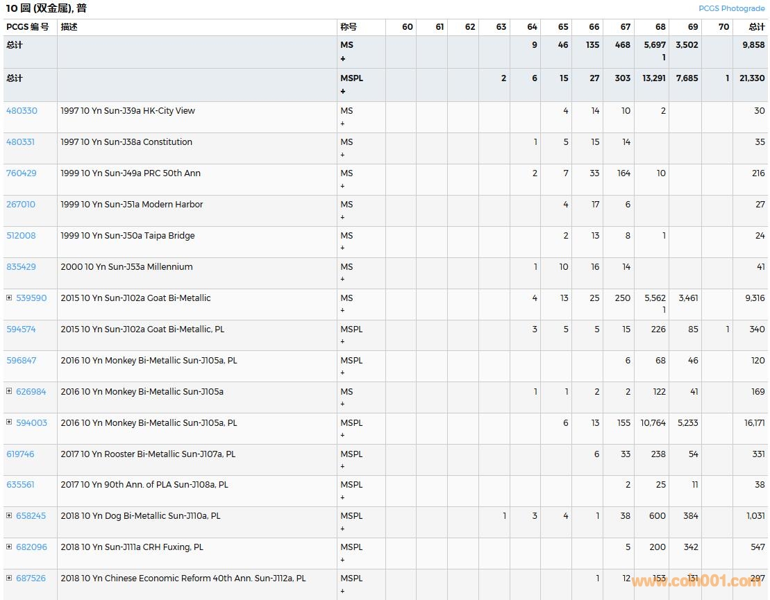 PCGS硬幣評級數(shù)量報告( ..