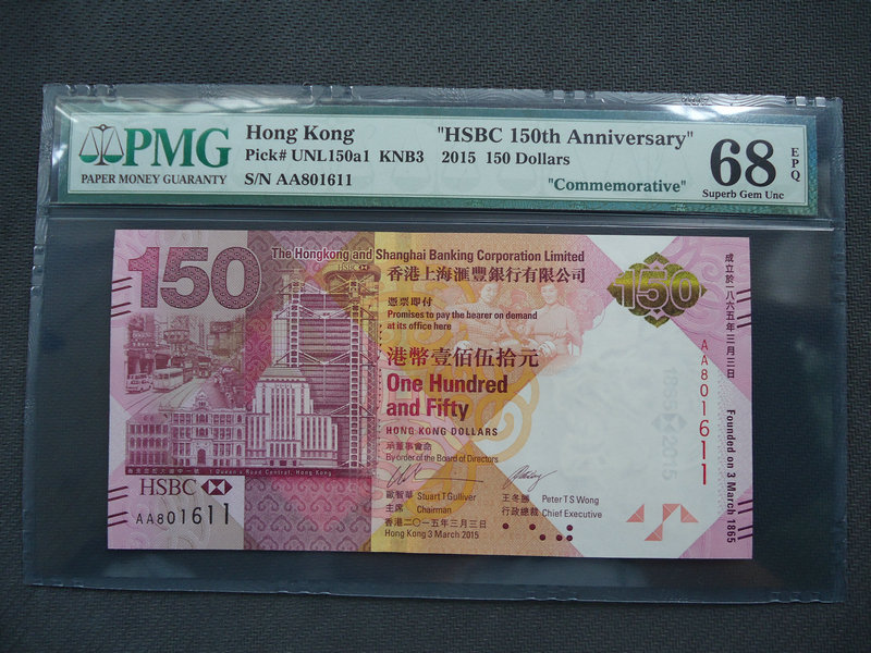 上個月剛剛發(fā)行的匯豐150周年紀(jì)念鈔