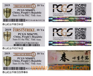 泰山紀念幣PCGS首日標簽(發(fā)行當日送評給首日標簽)初打標簽(發(fā)行30日內送評的給初打標簽)首日四季標簽春標(后續(xù)發(fā)行的黃山、首日夏標。峨眉山、首日秋標、武夷山首日冬標。發(fā)行完畢四季首日湊成春夏秋冬四種標簽四種幣一套。)