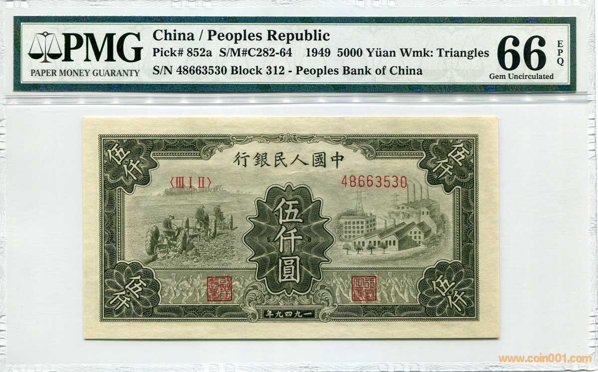 PMG 66 EPQ 一版人民幣拖拉機(jī)與工廠5000元 2連號(hào) 可單出
