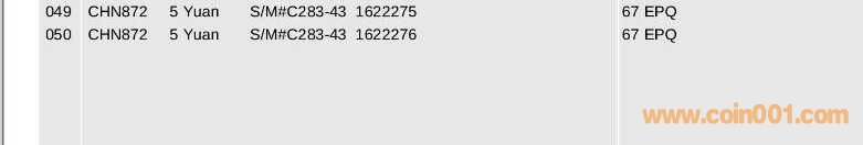 出黃5元 19連 PMG 67分