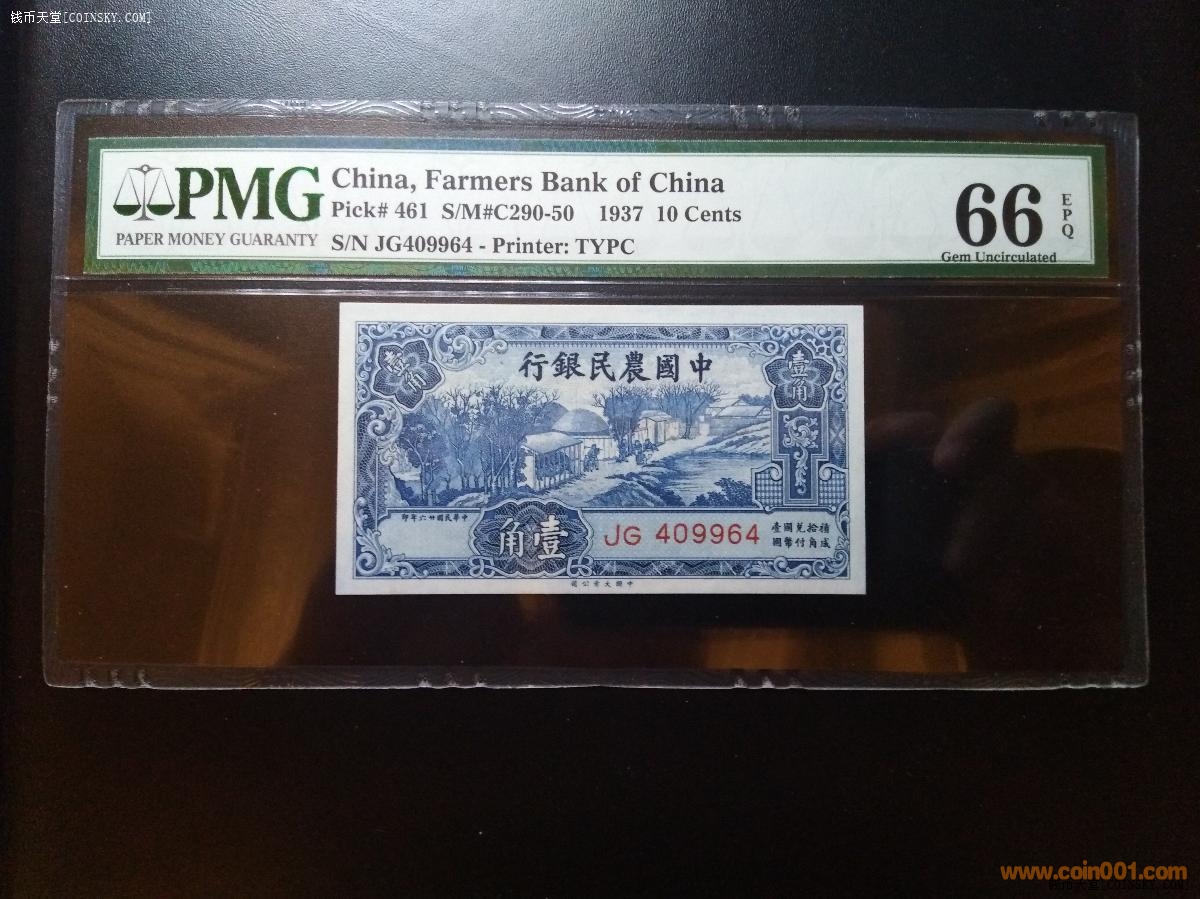 民國(guó)PMG66分農(nóng)行藍(lán)一角