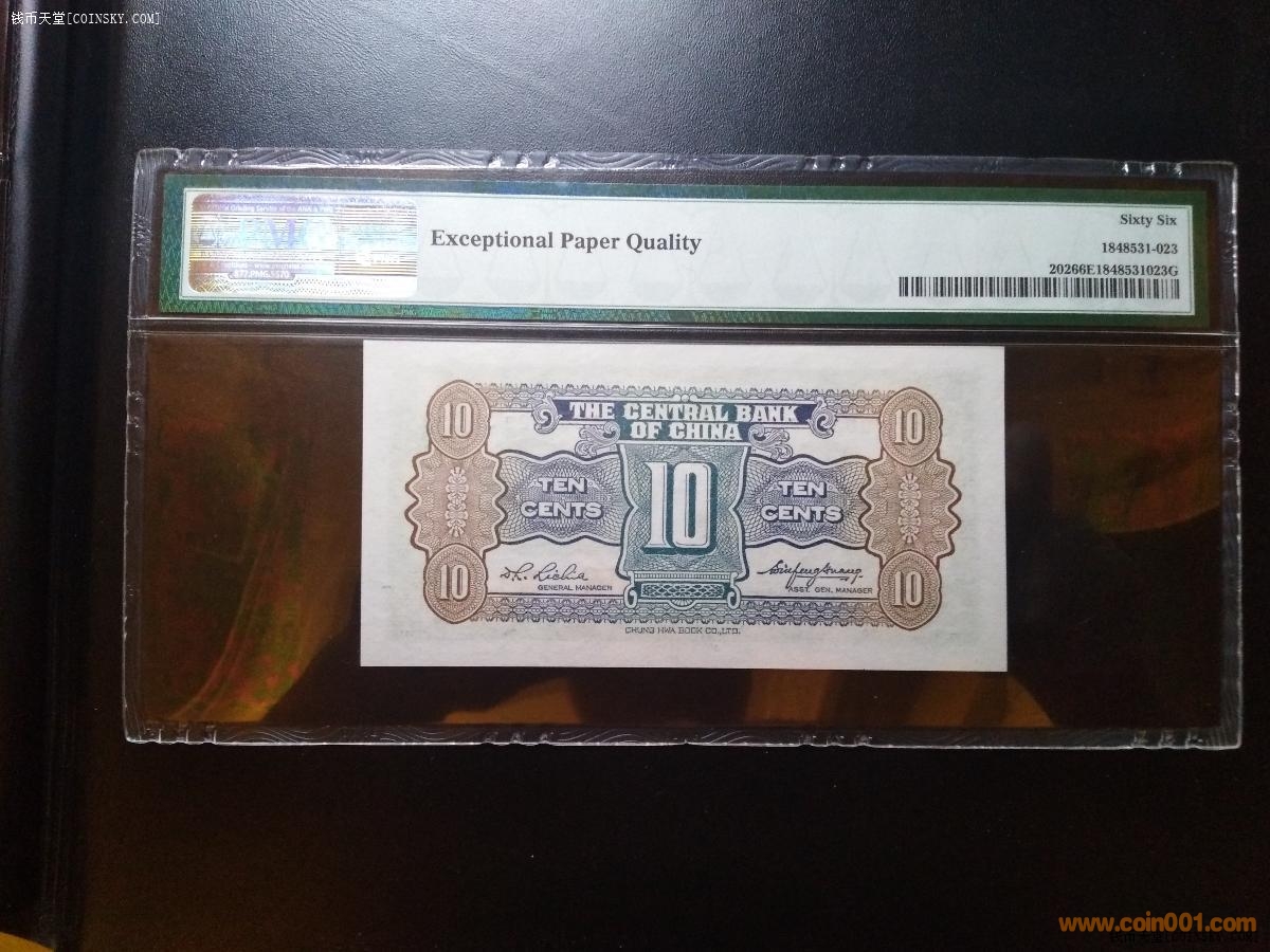 民國PMG66分中央綠壹角