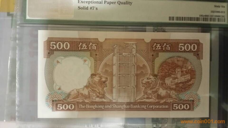 圖片:1991年,香港上海匯豐銀行伍佰元,BJ,777777,PMG,66,EPQ(北京冠號(hào))背面.jpg