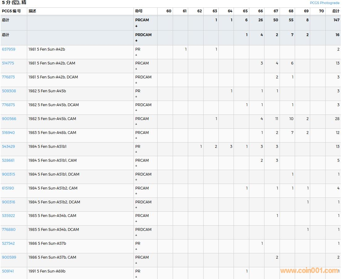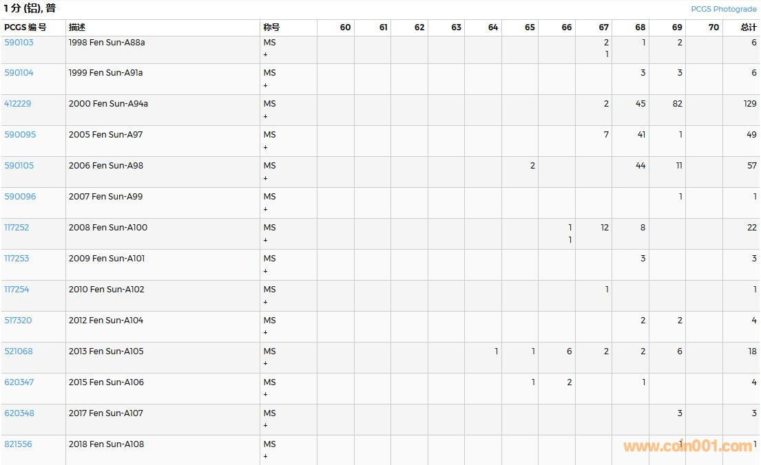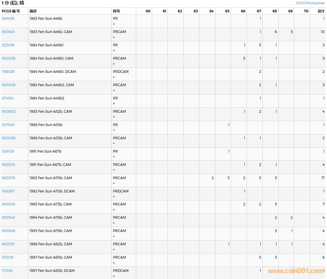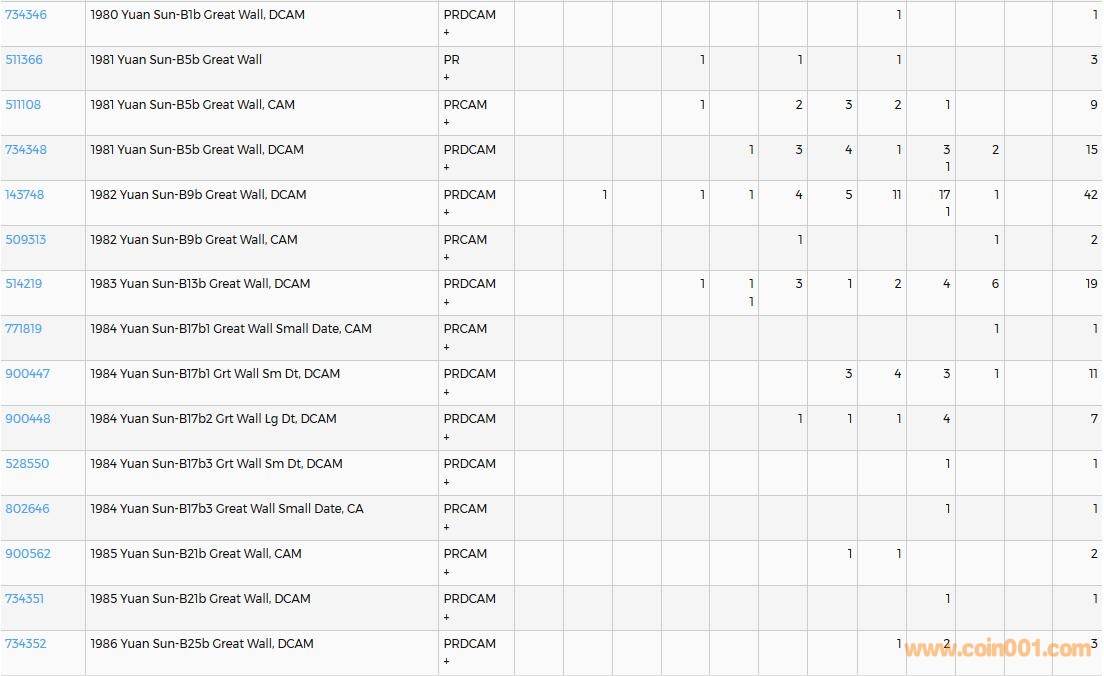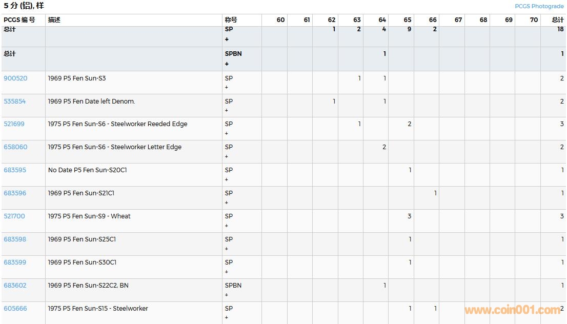 PCGS硬幣評級數(shù)量報告( ..