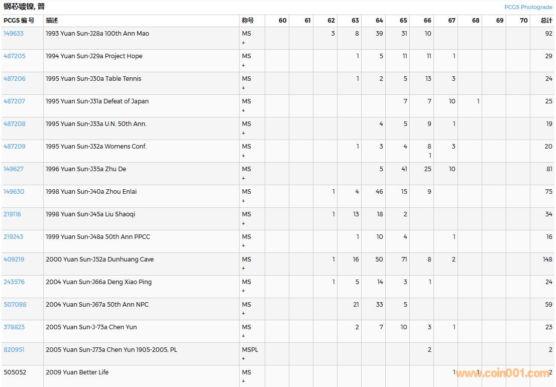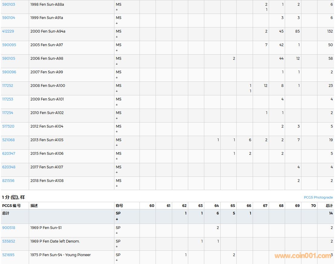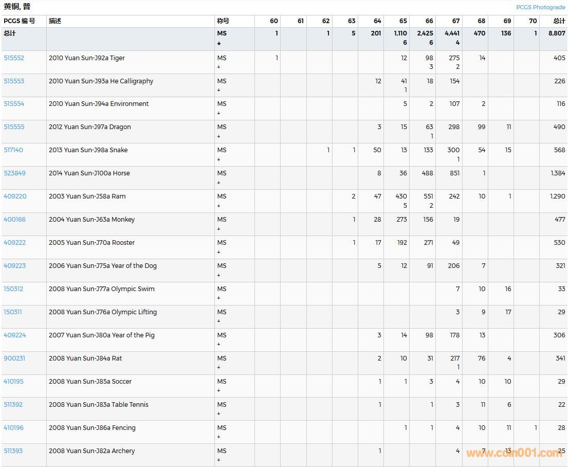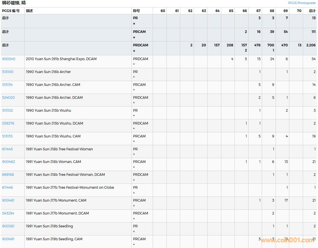 PCGS硬幣評級數(shù)量報告( ..