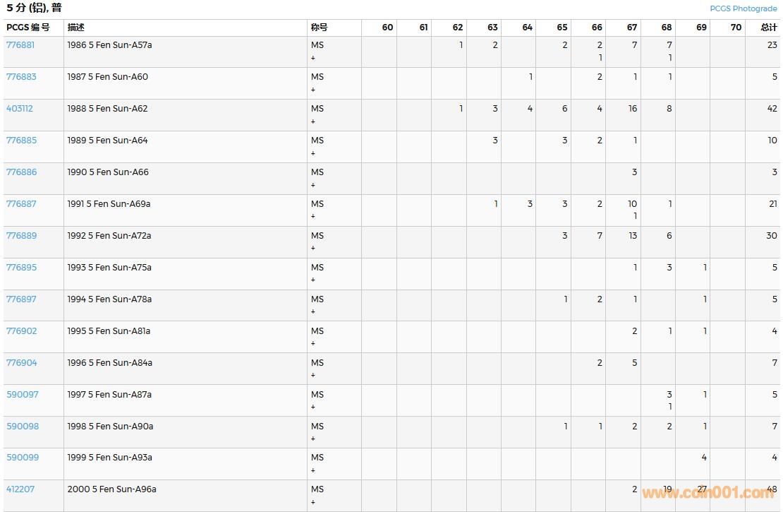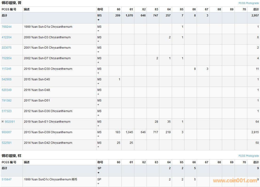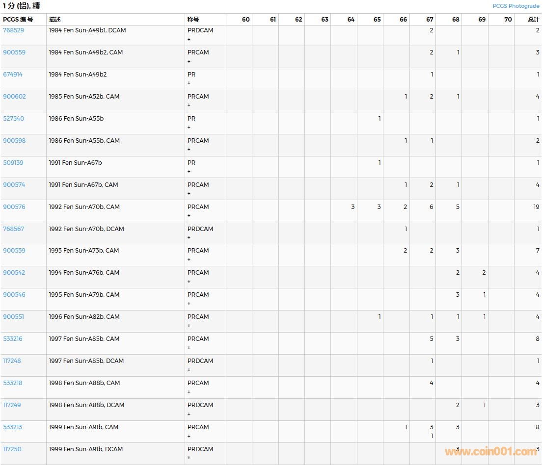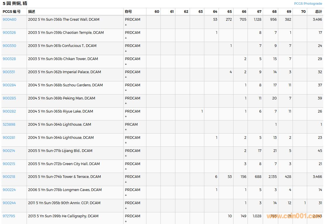 PCGS硬幣評級數(shù)量報告( ..