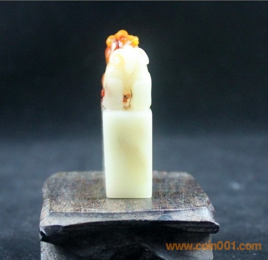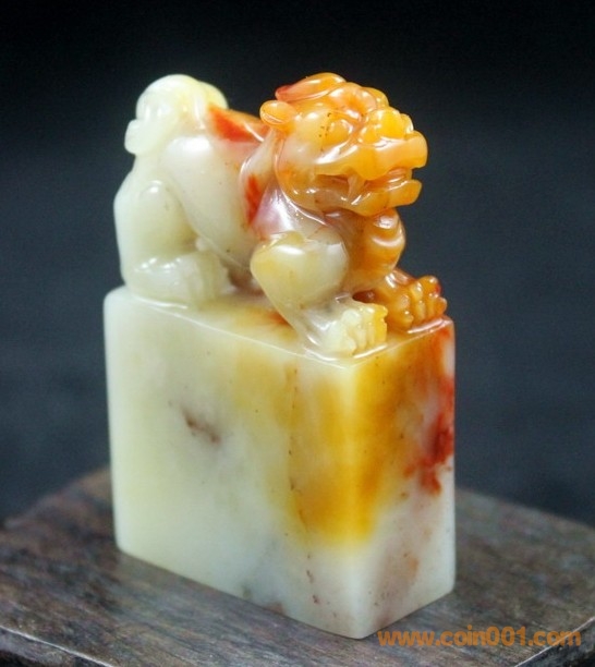 (3)壽山石之三色芙蓉石古獸鈕章,章高5.2公分、章面3.2*1.5公分,壽山石老性三色芙蓉質(zhì)地,古獸鈕扁章,精巧大方,配送木底座及錦盒,全品,無缺陷,包真包正宗壽山石,價格:850元,實在價格,不接大刀;