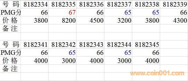 昨晚剛剛出分(7015097),估計(jì)10天左右到手。號(hào)碼、分?jǐn)?shù)、價(jià)格對(duì)應(yīng)于下表。實(shí)價(jià)銷售。最近受電子盤影響,行情變化快,確認(rèn)后請(qǐng)于3日內(nèi)付款有效??梢约游襋Q提供裸幣圖。