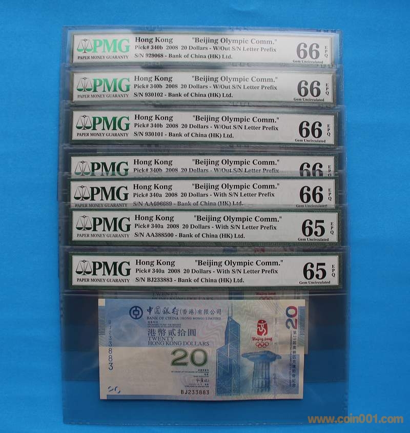PMG 66E 絕品香港奧運鈔 ..