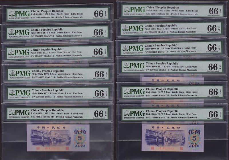 【珍品惜售】---絕中絕平版水印伍角PMG66分十五張連號