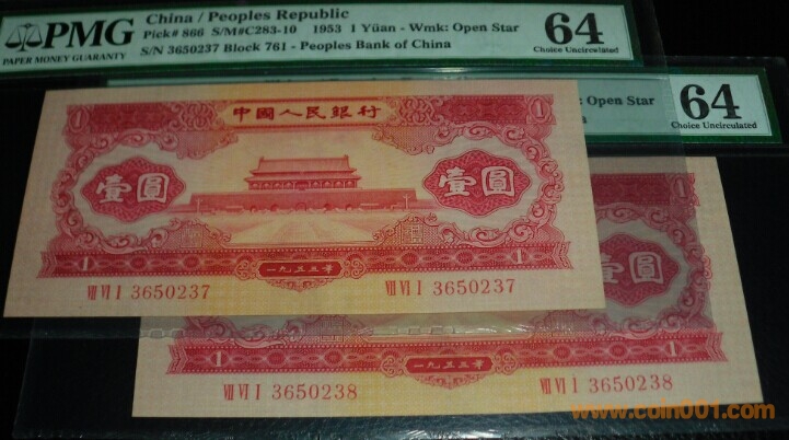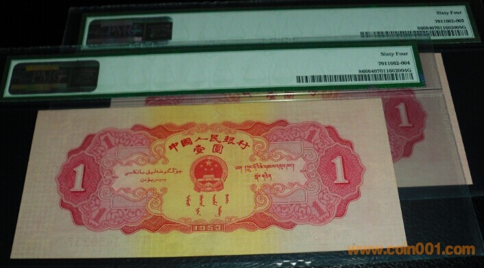 PMG64.紅一元,2連號(hào) ..