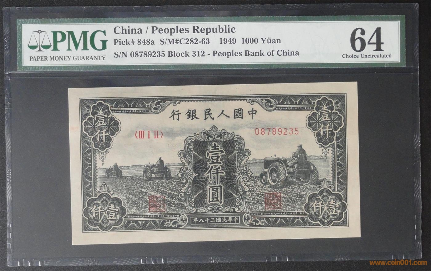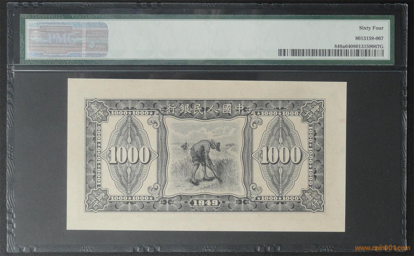 64分1000元黑三拖:14800元(顏色艷麗,絕對原票。若不是票面正面左邊邊框處的油墨,至少65EPQ )