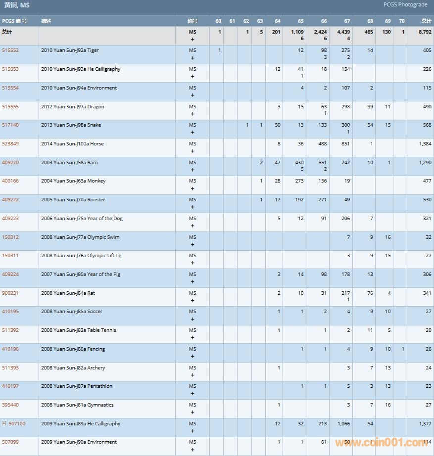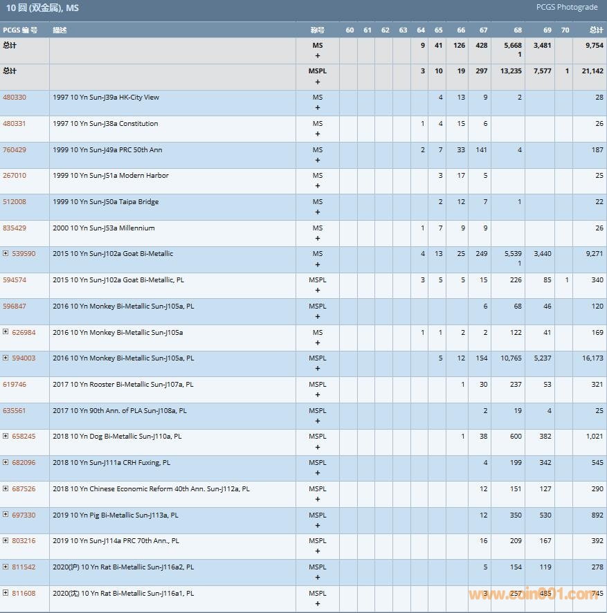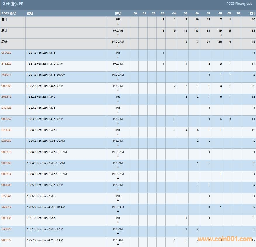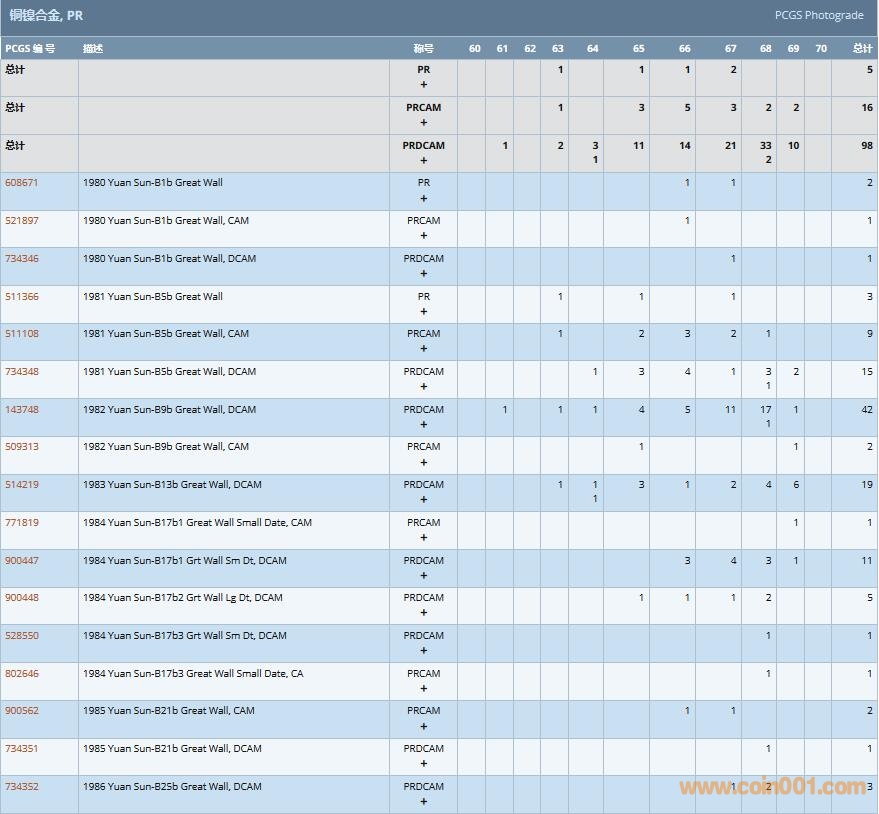 PCGS硬幣評級數(shù)量報告( ..