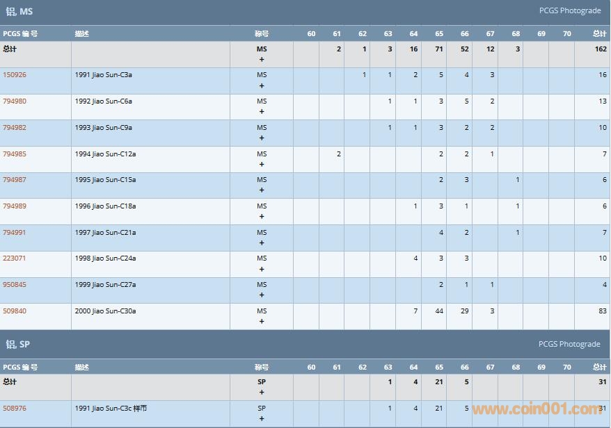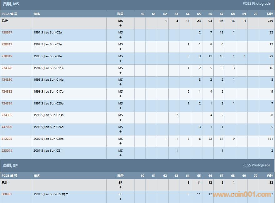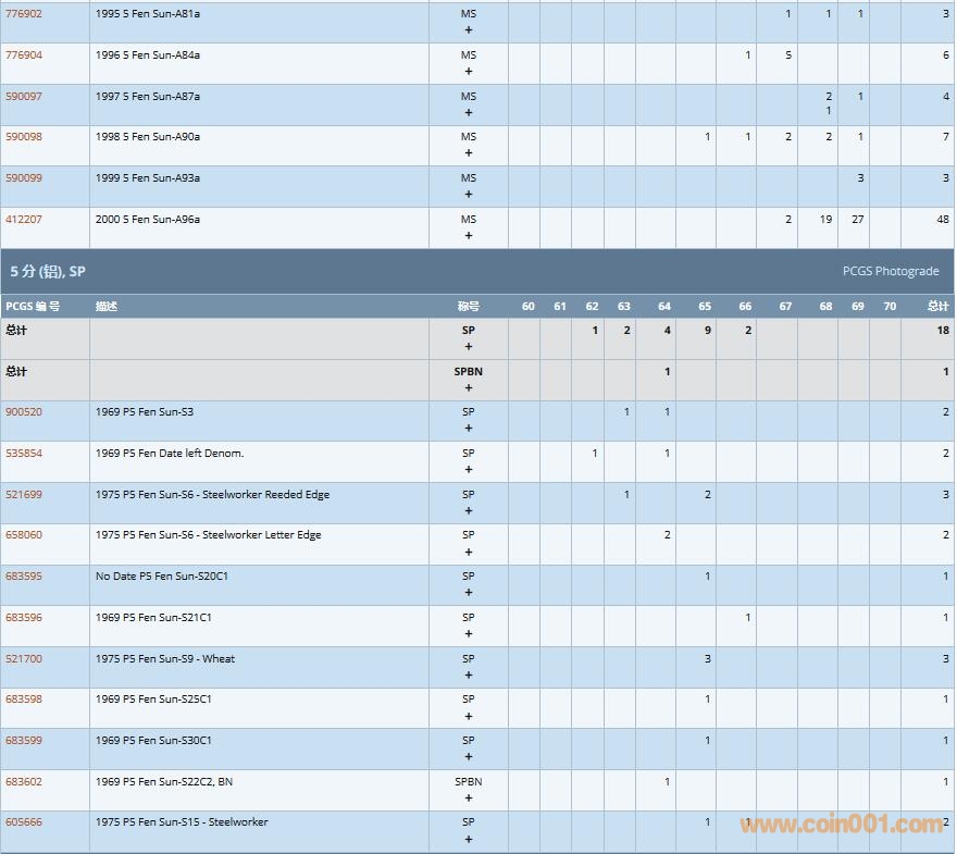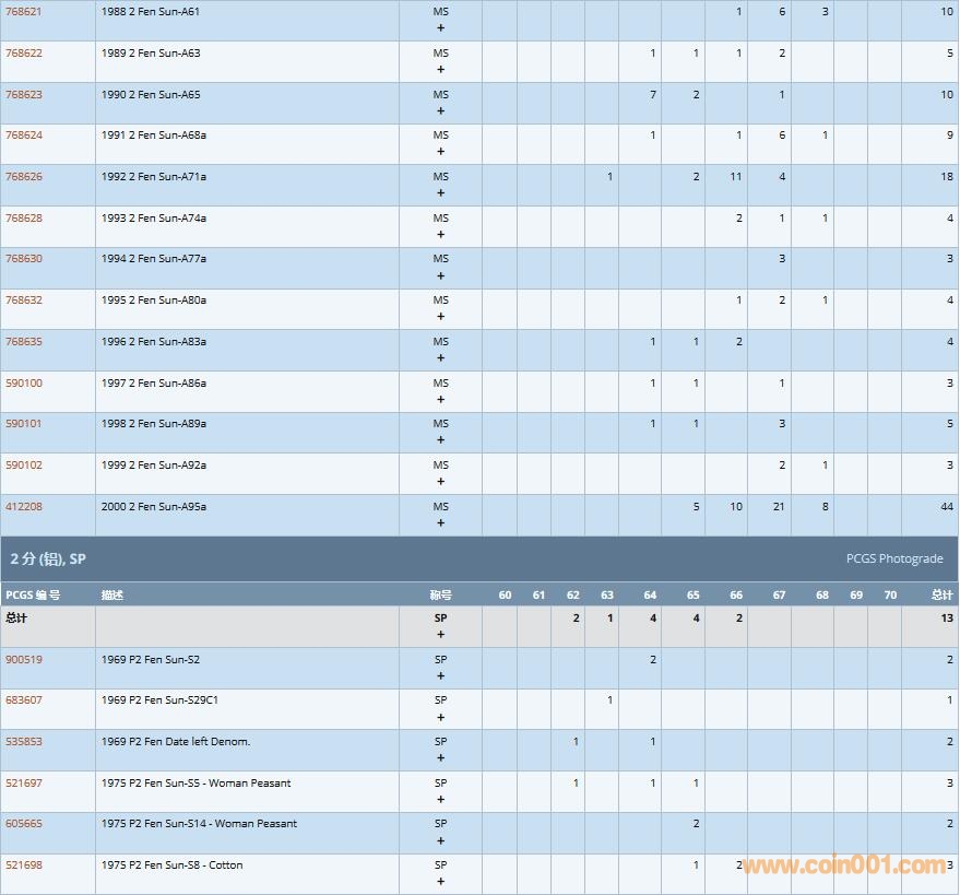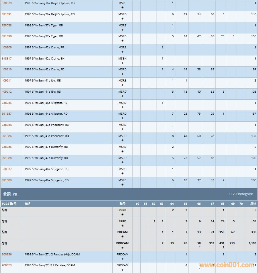 PCGS硬幣評級數(shù)量報告( ..