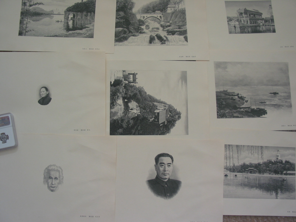 這里的12幅作品是使用北京印鈔廠雕刻師傅手工雕刻的鋼版用印鈔設(shè)備印刷的。