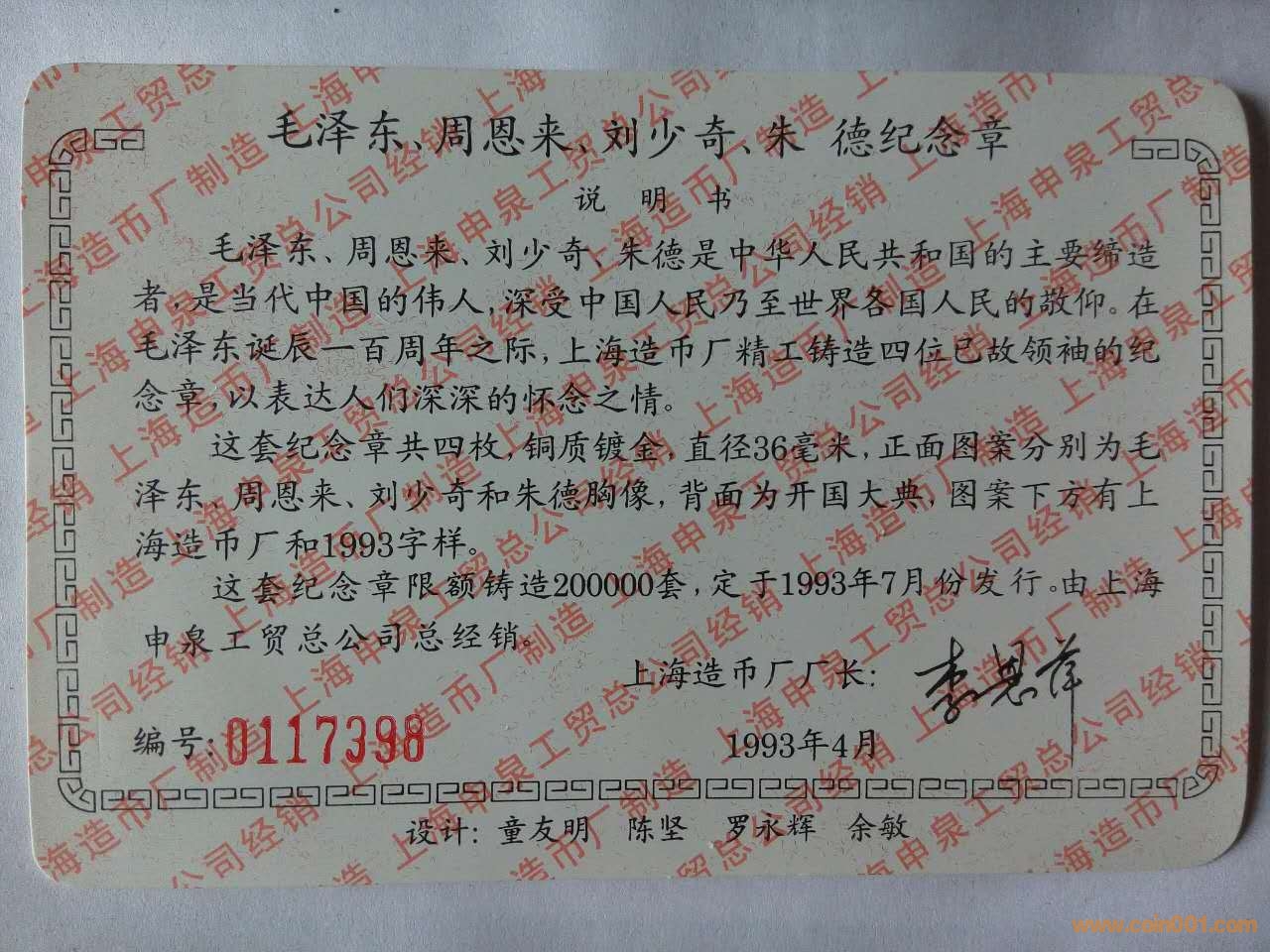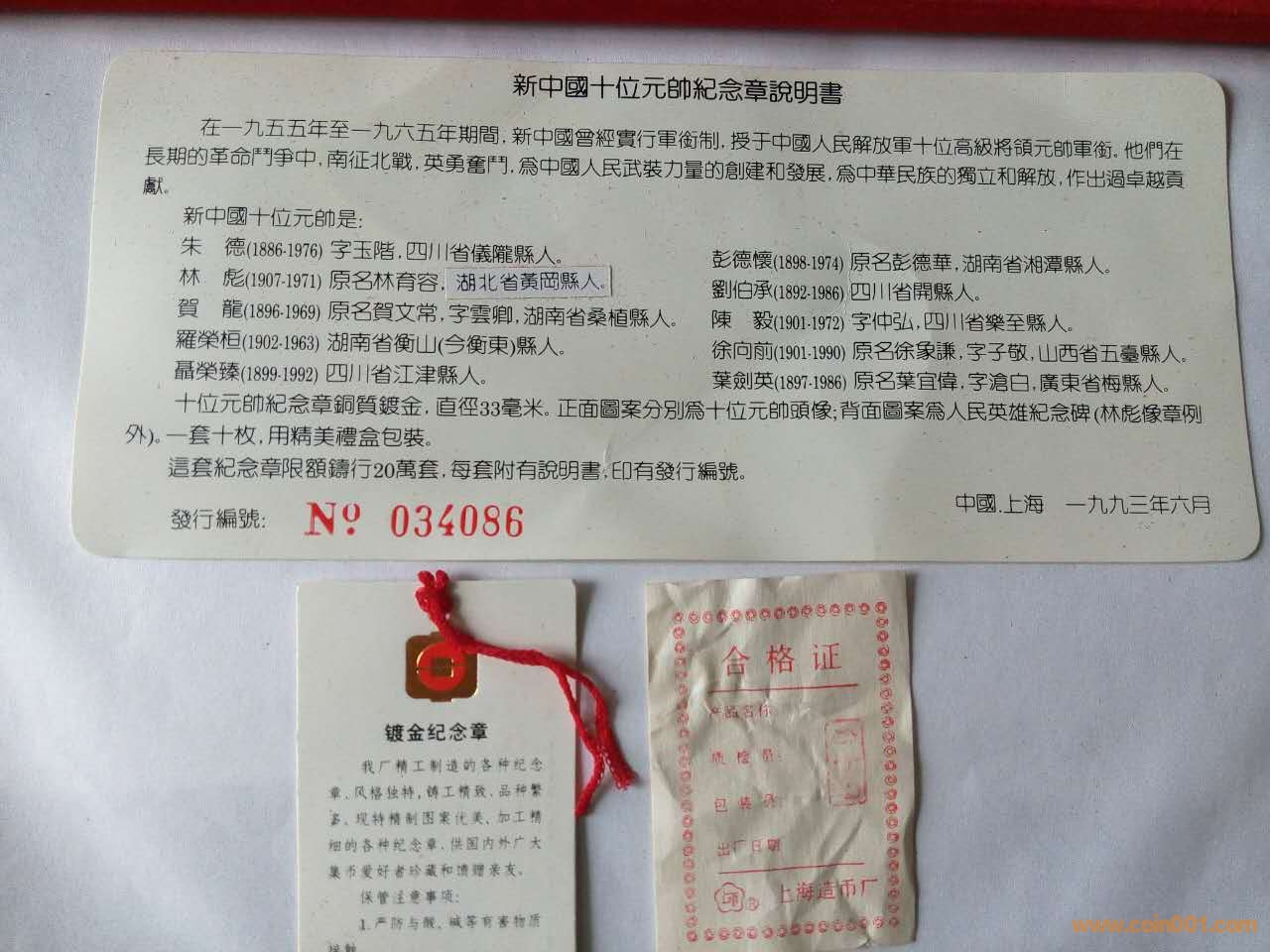 低價(jià)轉(zhuǎn)讓93年上海造幣廠四大偉人及十大元帥鍍金紀(jì)念章