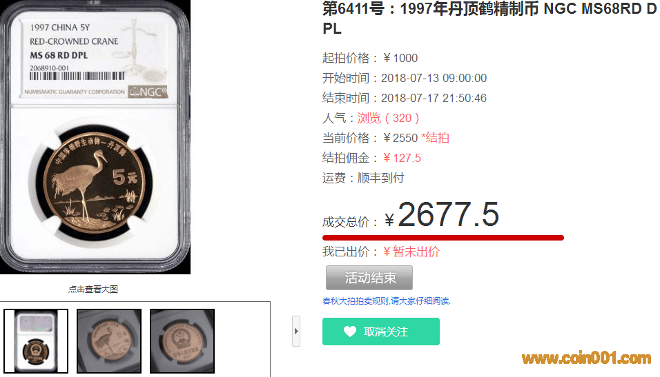 1997年丹頂鶴精制幣 NGC ..