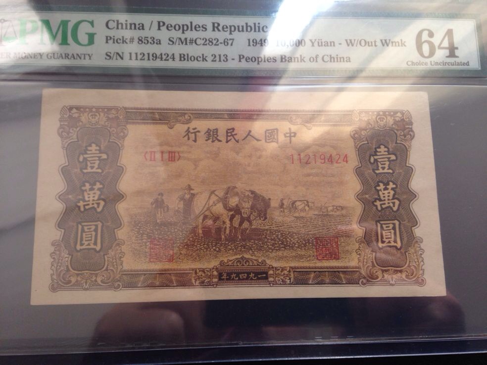 PMG64老假票雙馬耕地--4 ..