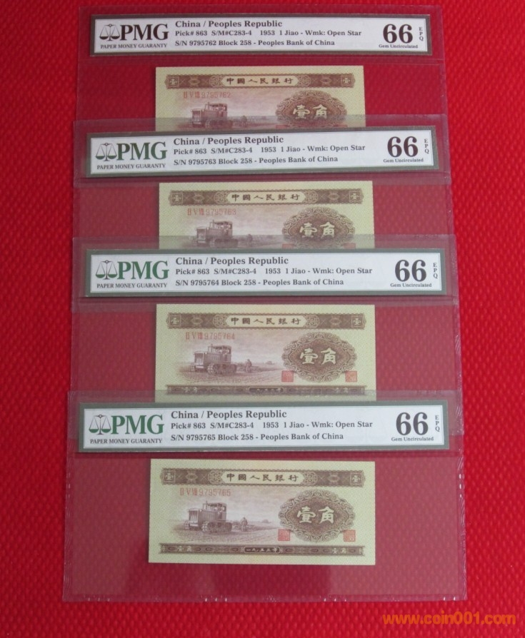 紅二平一角877f PMG67E(65169601-65169700)--均價630/張,特殊號另議