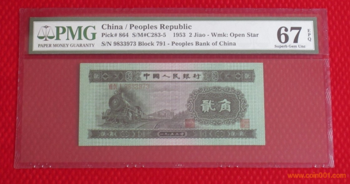 藍(lán)三平一角877c PMG67E(9892209-9892300)--均價230/張,特殊號另議