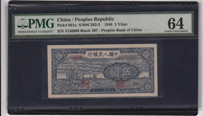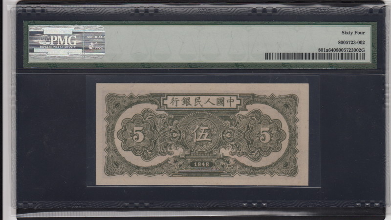 第一版帆船5元,季軍分,PMG64, 4100元