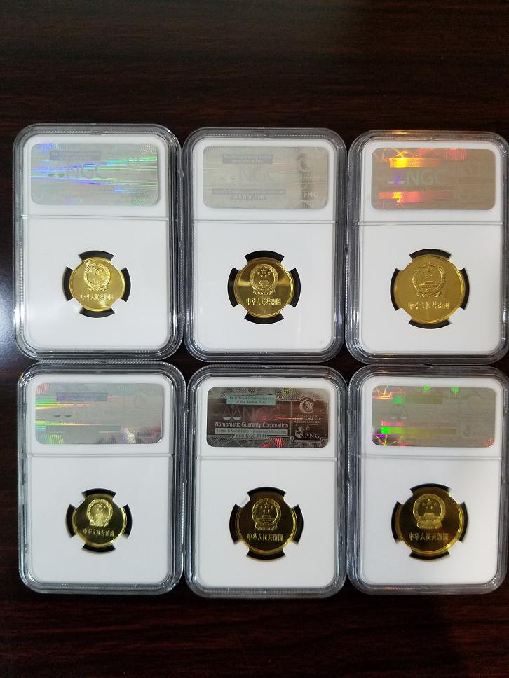 ????近來,本人通過現(xiàn)代網(wǎng)和馬甸市場(chǎng)收藏到一套六枚84年角幣,三枚沈陽版,三枚上海版。由于沈陽版工藝問題,想湊成69分全套幾乎不太可能了,目前擁有68分全套角幣的藏家也絕對(duì)不超過三位。根據(jù)NGC官方數(shù)據(jù),銅鋅合金的長(zhǎng)城角幣高分?jǐn)?shù)量遠(yuǎn)低于銅鎳合金的1元主幣,甚至其氧化程度也比精制千年五角嚴(yán)重。但是從市場(chǎng)表現(xiàn)看,千年精制五角風(fēng)頭蓋過了雙花幣王,但是高分長(zhǎng)城角幣的價(jià)格卻遠(yuǎn)低于主幣,甚至低于高分精制梅花五角。