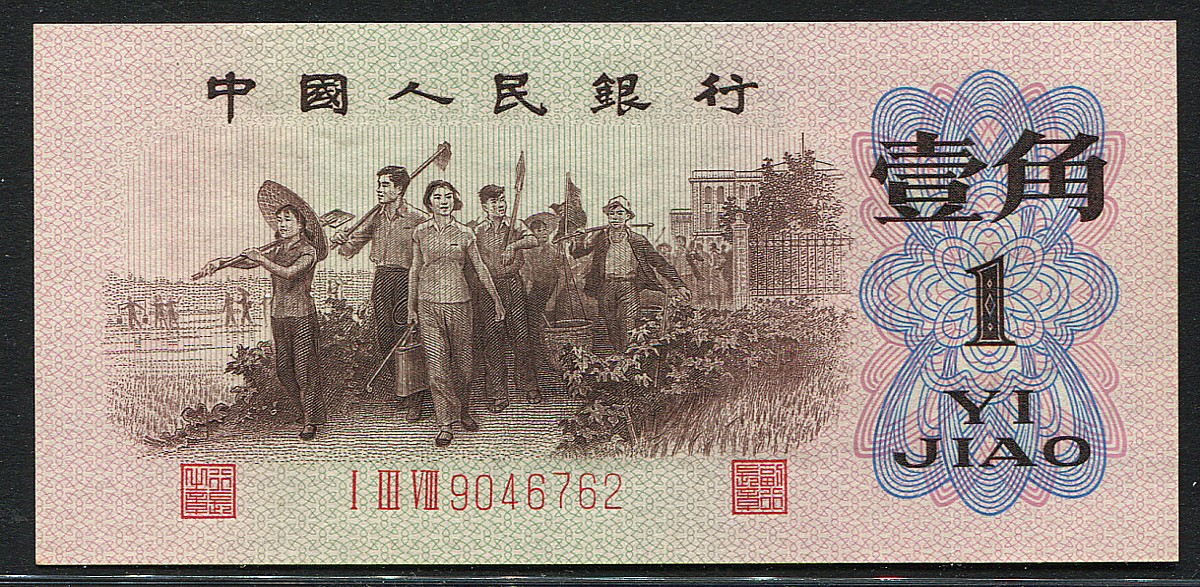 (轉載)137和138??于生產于 66年底出生,之前有背水136冠號,之后有139背綠冠號,所以137和138冠號紅3凸不光是油墨和紙張均直接使用自前兩種高檔幣,蘇聯紙??梢哉f137和138冠號紅三凸是背水(136冠號)和背綠(139冠號)的過渡幣種,細看這種幣種,紙張油性、墨色油潤、凹凸版明顯,有網友把137.138系列冠號單列出來管理,命名為"渡背",意為過渡時期的背棕水印紙幣,137和138冠號紅3凸票幅較一般紅三凸偏大,筆者計量過大約大1.2MM。同背綠水印、背綠相同。