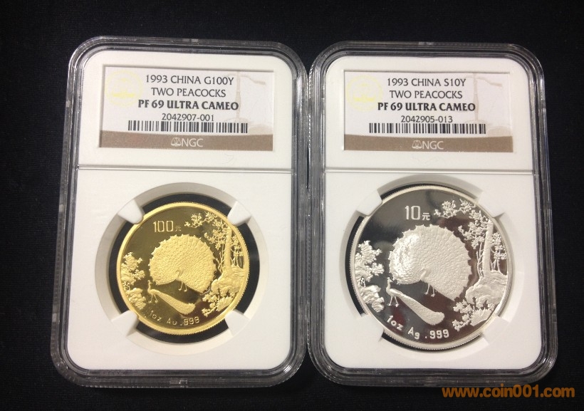 1993年孔雀銀幣加金幣NGCPF69UC售價75000一對